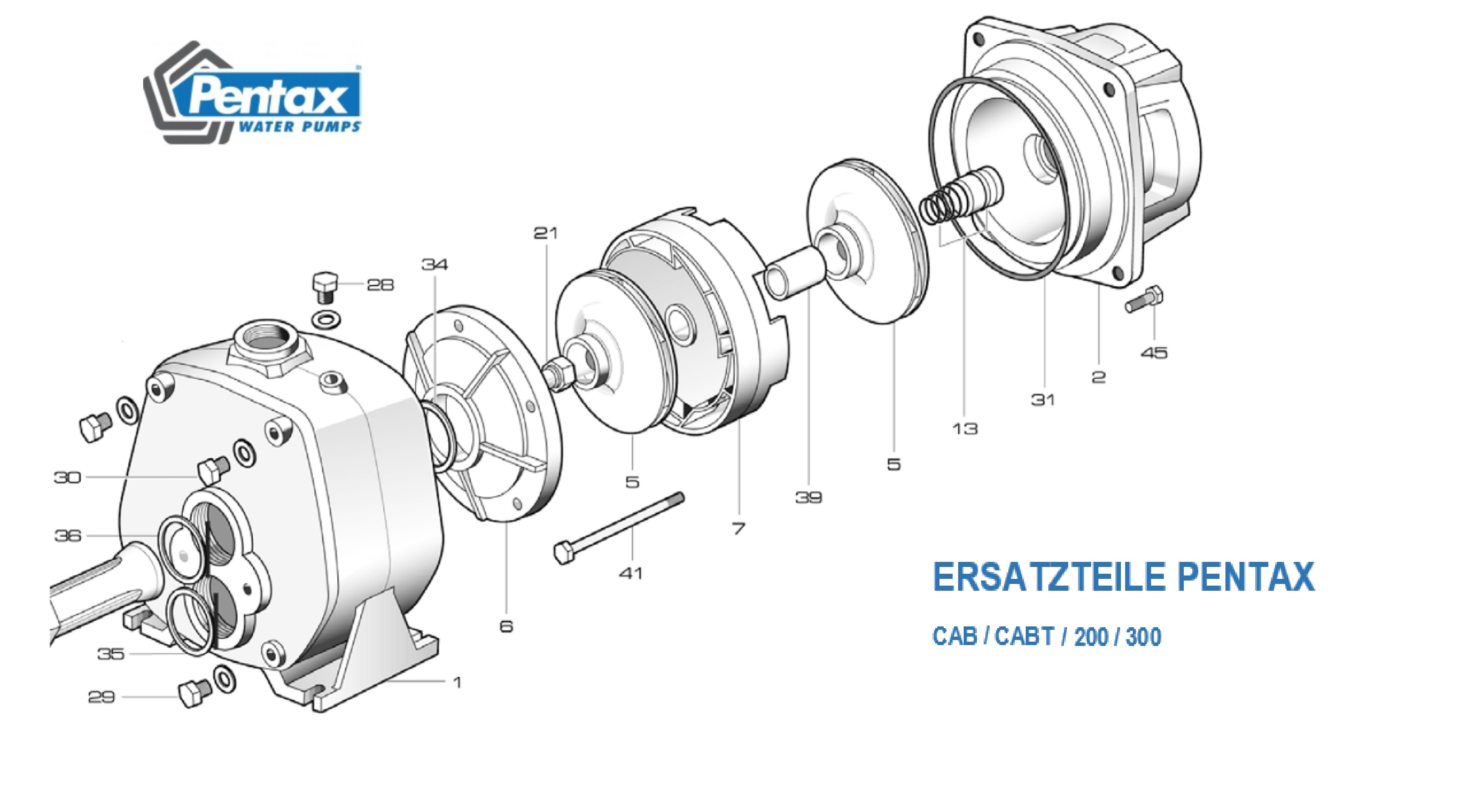 Reparaturatz für die Pumpe CAB und CABT 300 vom Hersteller Pentax. Original Ersatzteile gewährleisten eine reibungslose Reparatur Ihrer Pumpe.