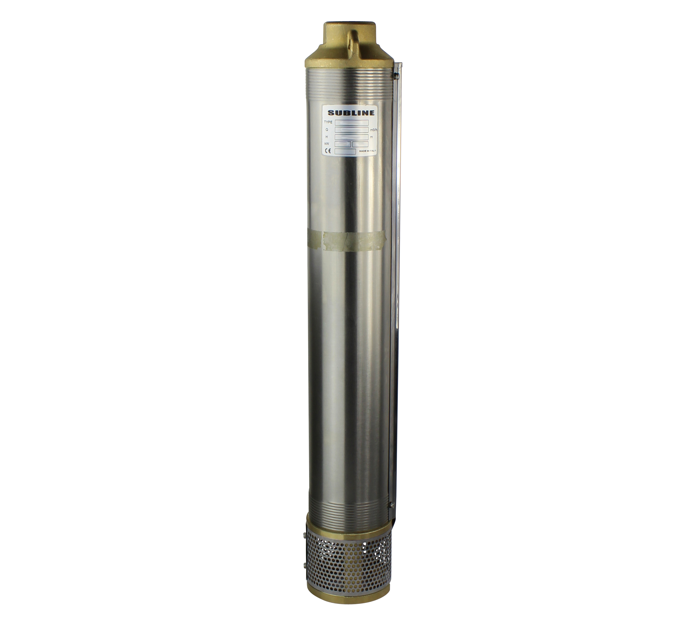 Mehrstufiges Unterwasserpumpen-Oberteil (hydraulischer Teil), Gehäuse aus Edelstahl, Pumpenkopf aus Messing.