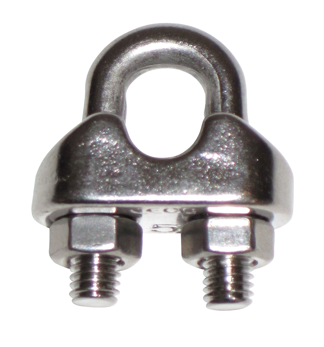 Seilklemme / Bügelklemme aus Edelstahl für Edelstahl-Drahtseile mit 3 mm Durchmesser.