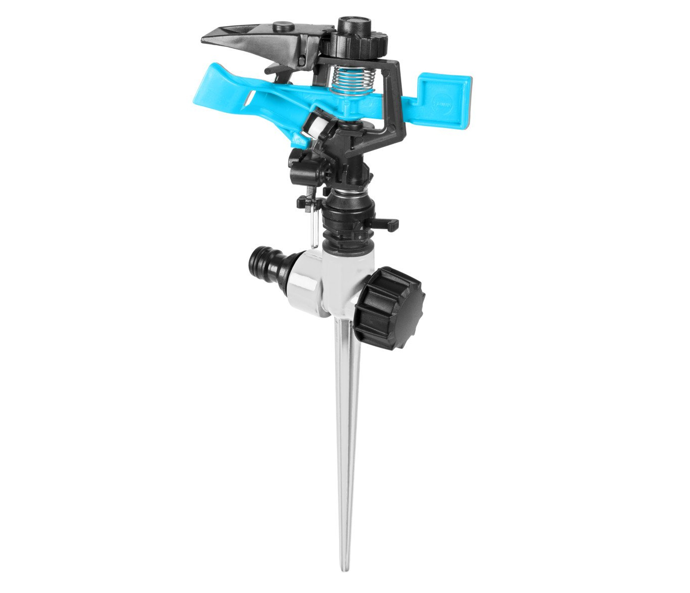 Impulsregner mit Erdspieß, Sprengbereich einstellbar von 30° - 360°. Dieser Artikel ist kompatibel mit dem Gardena Steck-System.