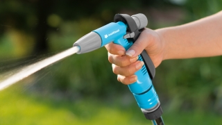 Verfügt über eine volle und flüssige Regulierung der Wasserstromform so wie beim einfachen Standard-Sprenger. Die Sprengerbetätigung erfolgt mittels eines Knopfes, der auch die Möglichkeit bietet, die Wasserstromkraft zu regulieren und das gewünschte Niveau zu halten. Dieser Artikel ist kompatibel mit dem Gardena Steck-System.