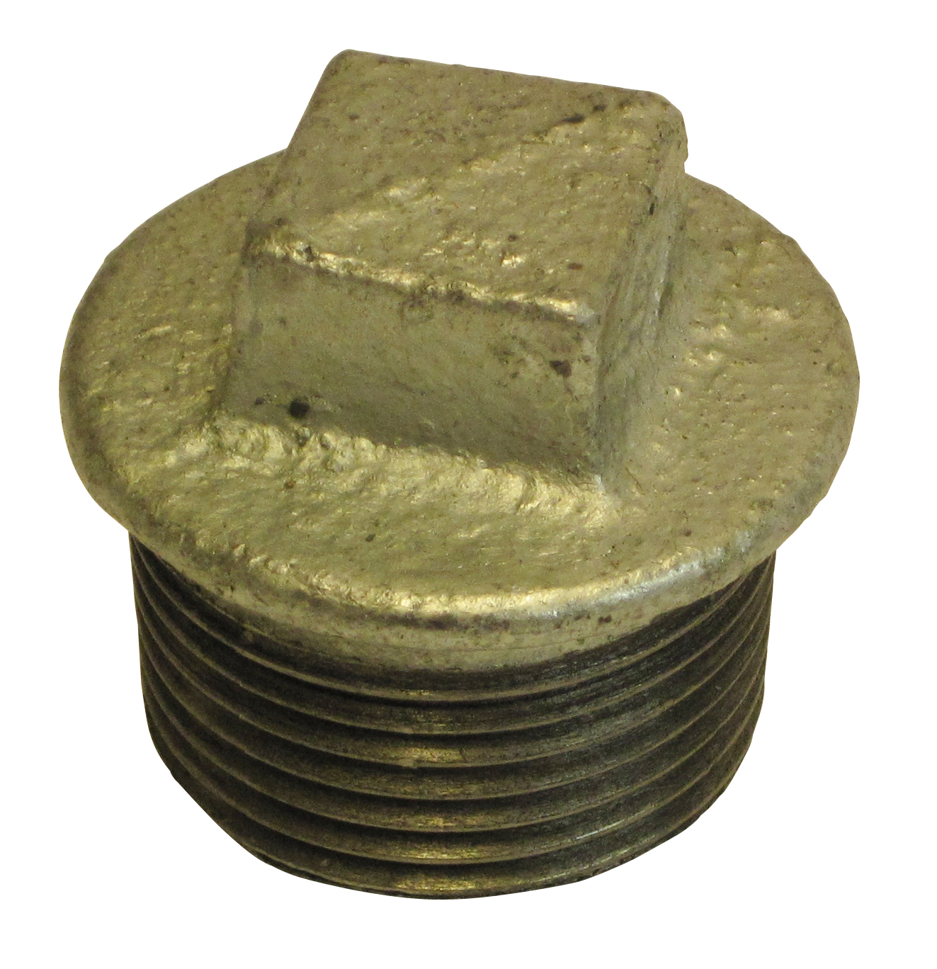 Blindstopfen aus verzinktem Temperguss, mit Außengewinde.
