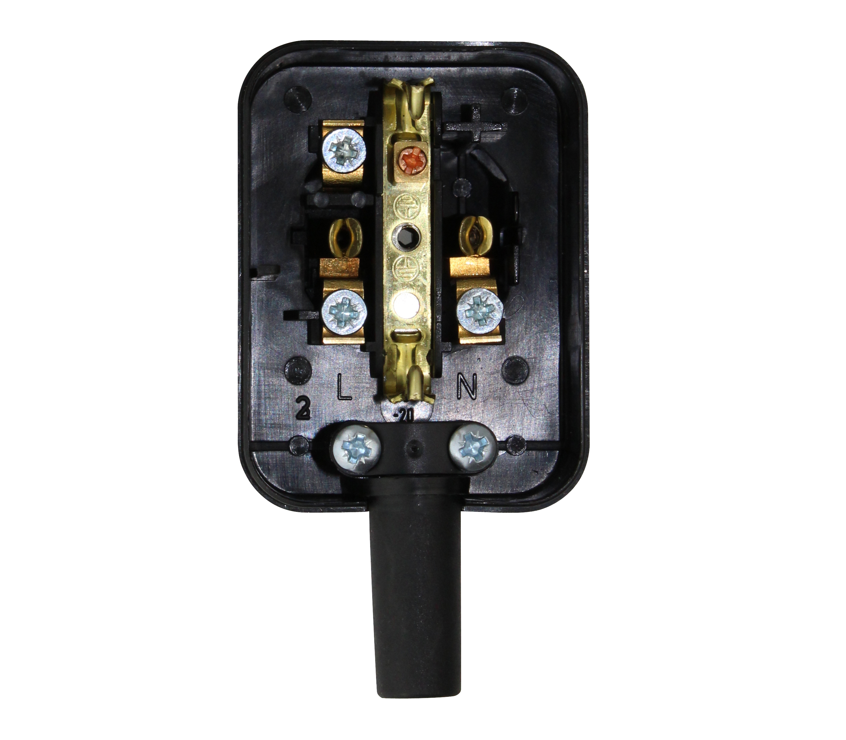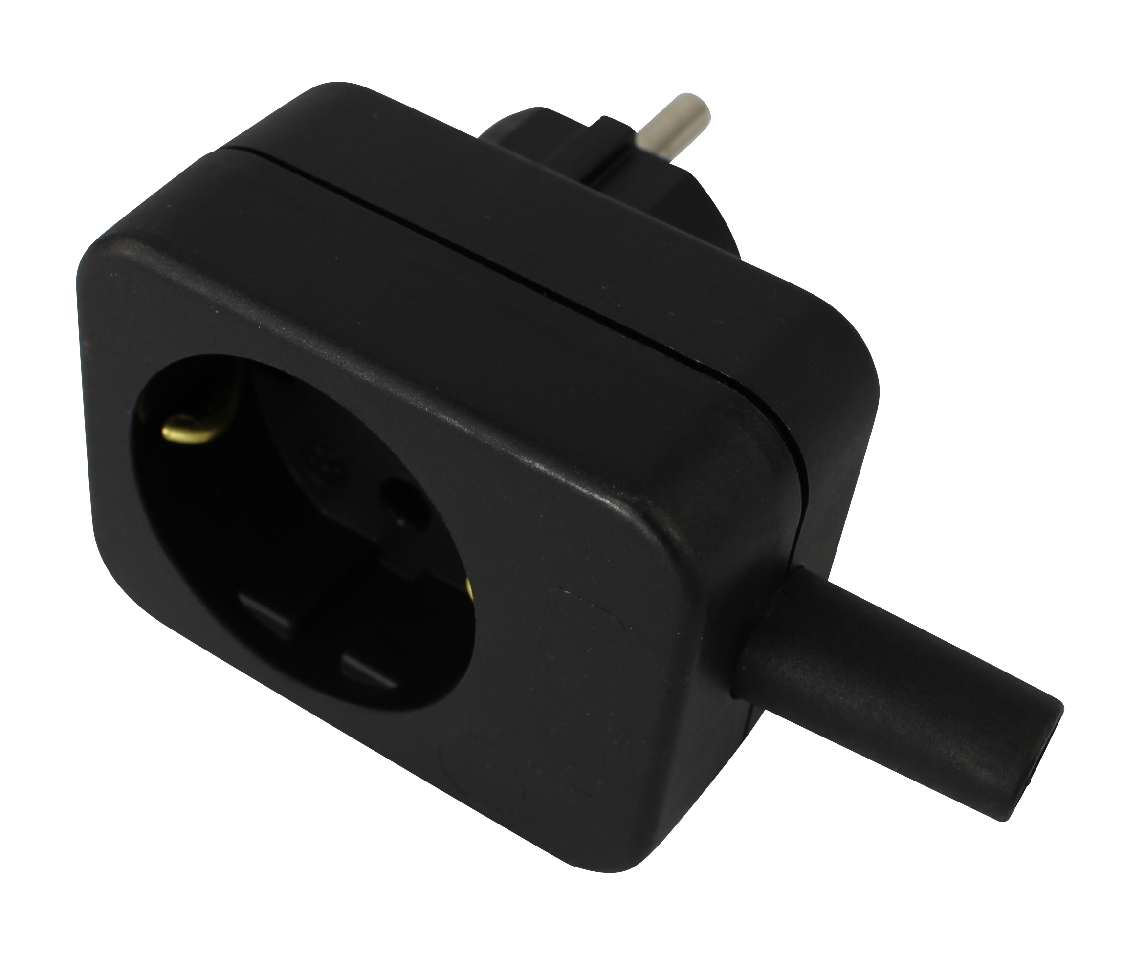 Kombistecker zum direkten Anklemmen eines Schwimmerschalters. Die Pumpe wird anschließend direkt mittels Schuko-Stecker angeschlossen. Steckerseite mit zwei Erdungssystemen nach CEE 7/VII.