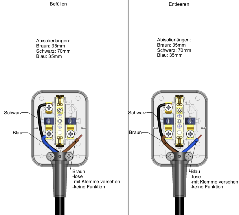 Der Schwimmerschalter eignet sich für die Steuerung von Tauch- und Brauchwasserpumpen und besitzt ein Kabel mit einem Gegengewicht sowie einem Kombistecker zum einfachen Anschluss der Pumpe per Schuko-Stecker. Dieser Schwimmerschalter ist für die Betriebsart "Entleeren" vorkonfiguriert. Durch einen Tausch der elektrischen Anschlüsse kann der Schwimmerschalter auch für die Betriebsart "Befüllen" umkonfiguriert werden (siehe hierzu das beigefügte Anschluss-Schema). Durch das Gegengewicht können Sie den Schaltbereich individuell verstellen.