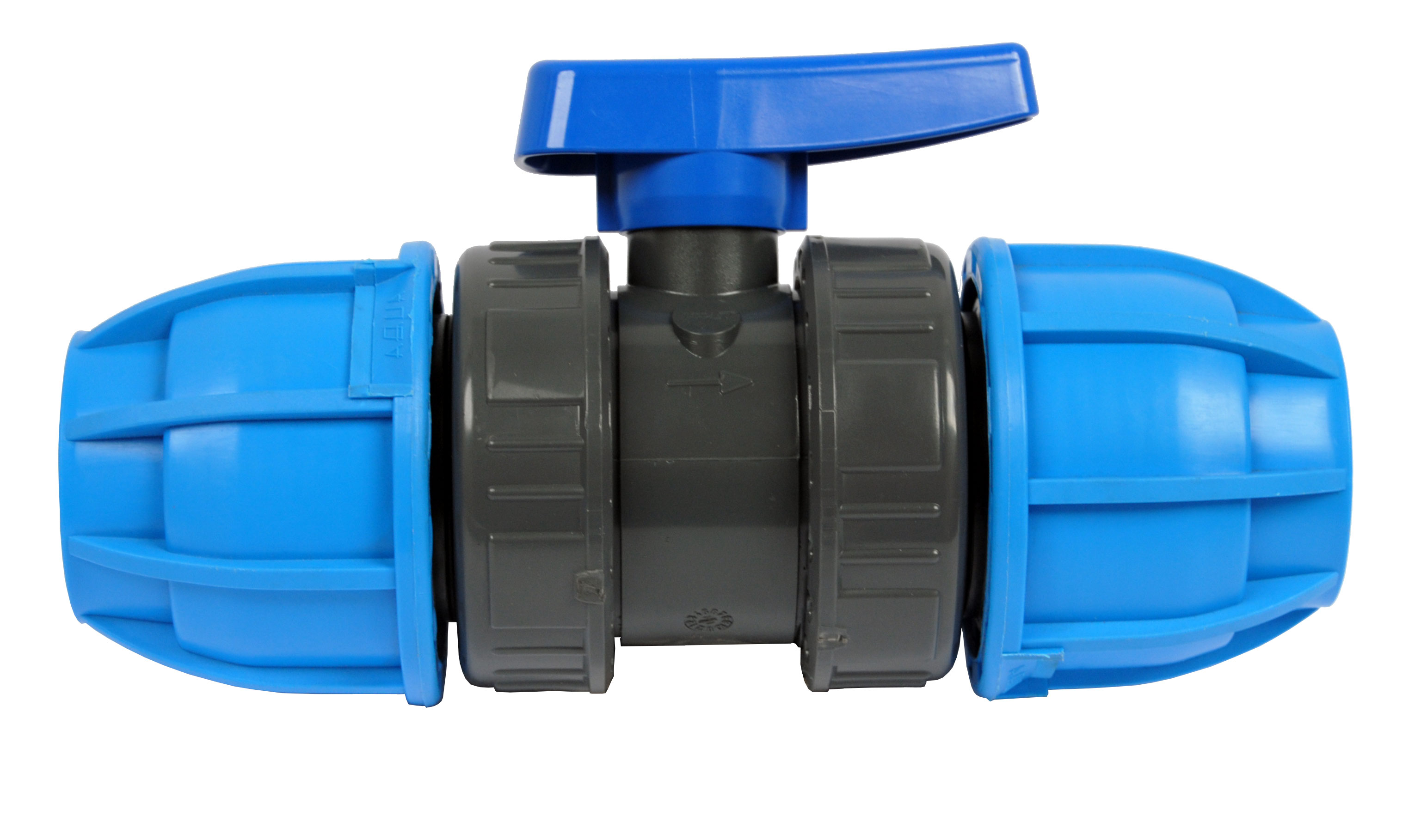 PVC-Kugelhahn Anschluss PE-Verschraubung beidseitig 50mm