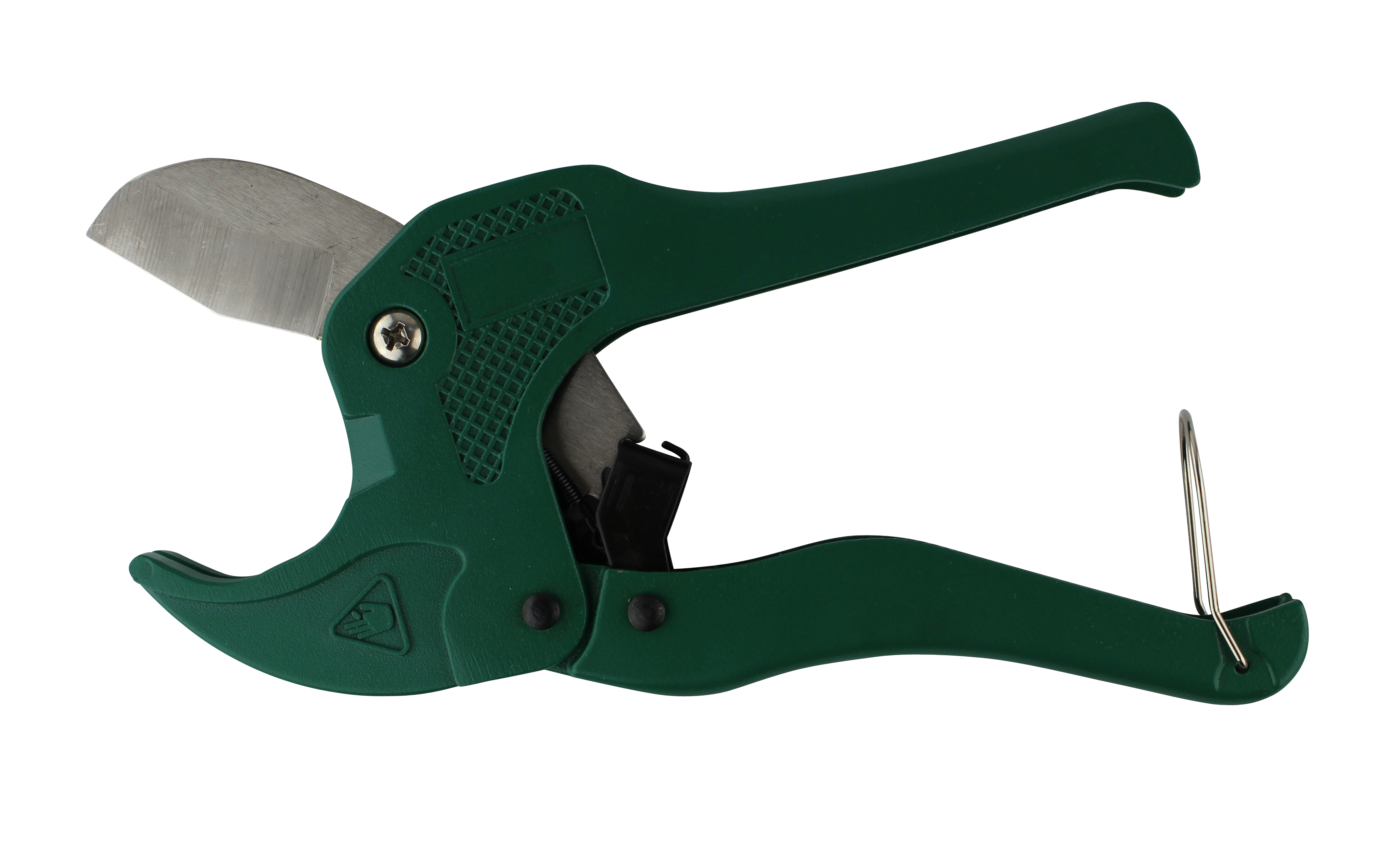 PE-Rohrschneider / Rohrschere, geeignet für PE-Rohre oder Schläuche mit einem Durchmesser von 16-42 mm. Ideal geeignet für den exakten und gratfreien Zuschnitt von PE-Rohren, was die Montage von PE-Verschraubungen erleichtert. Stabile Ausführung aus Metall.